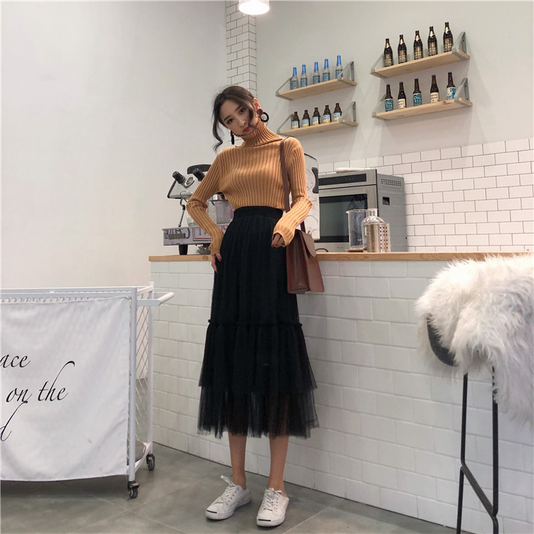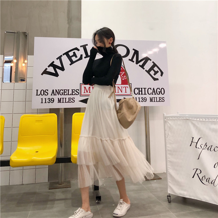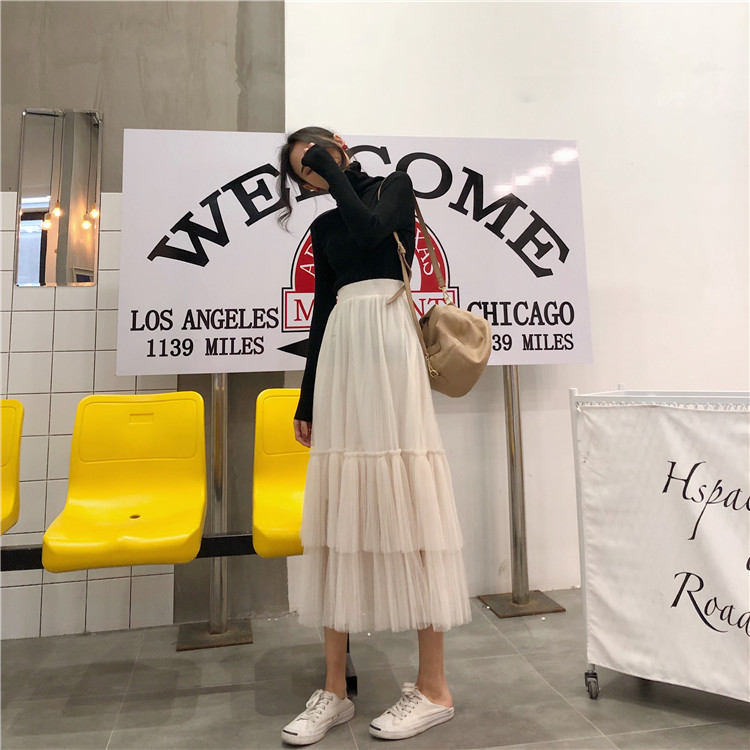 2018新款韓版裙子秋裝甜美氣質仙女顯瘦百褶蓬蓬網紗中長款半身裙