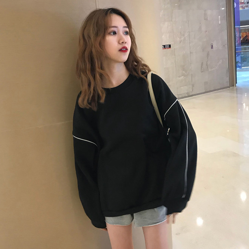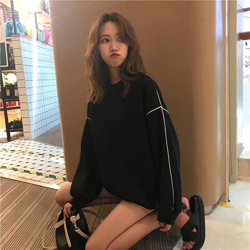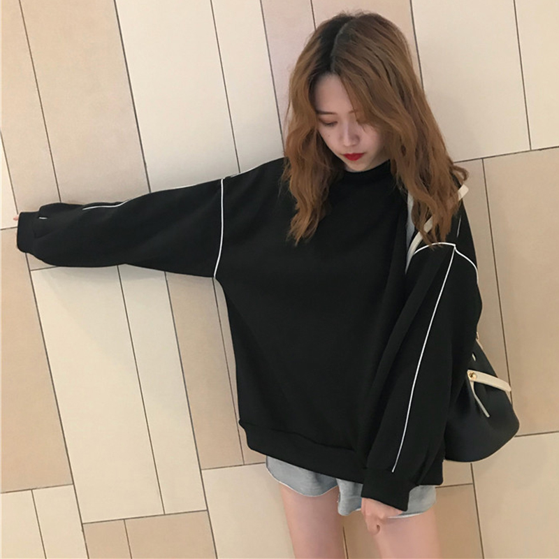 秋冬女裝2018新款韓版chic小寬松休閑衛衣學生明線條紋長袖套頭衫