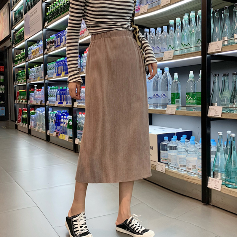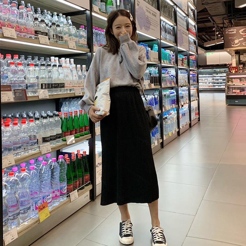 高腰顯瘦燈芯絨中長裙秋裝女2018新款學院風chic休閑黑色半身裙子
