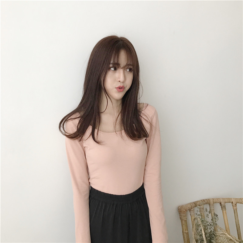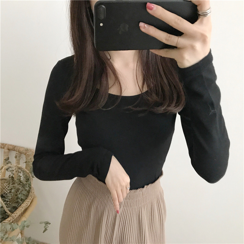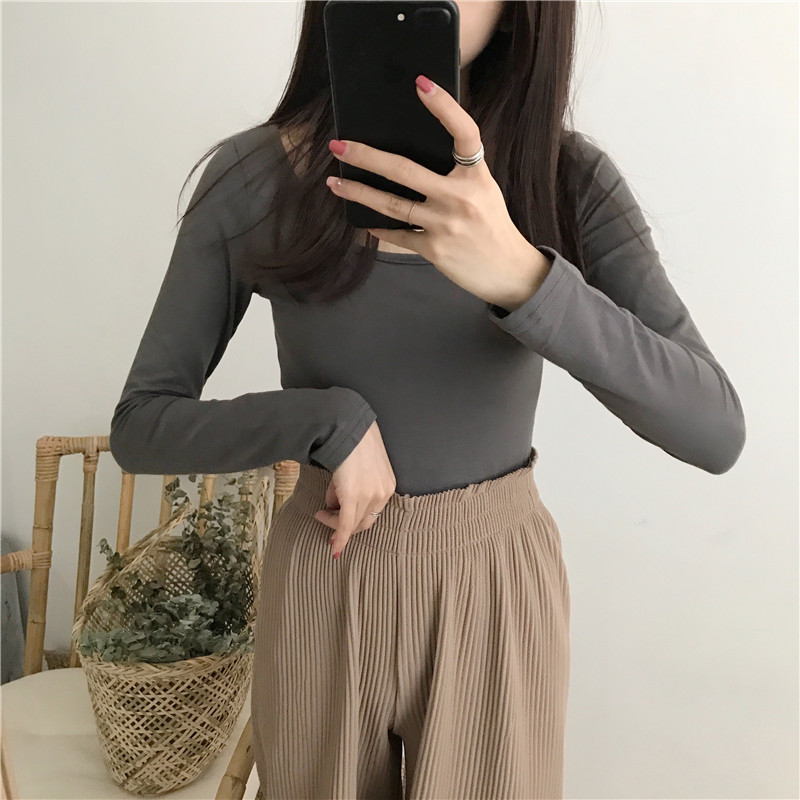 / chic早秋上衣女2018新款修身大圓領打底衫氣質款長袖露背芭蕾T恤