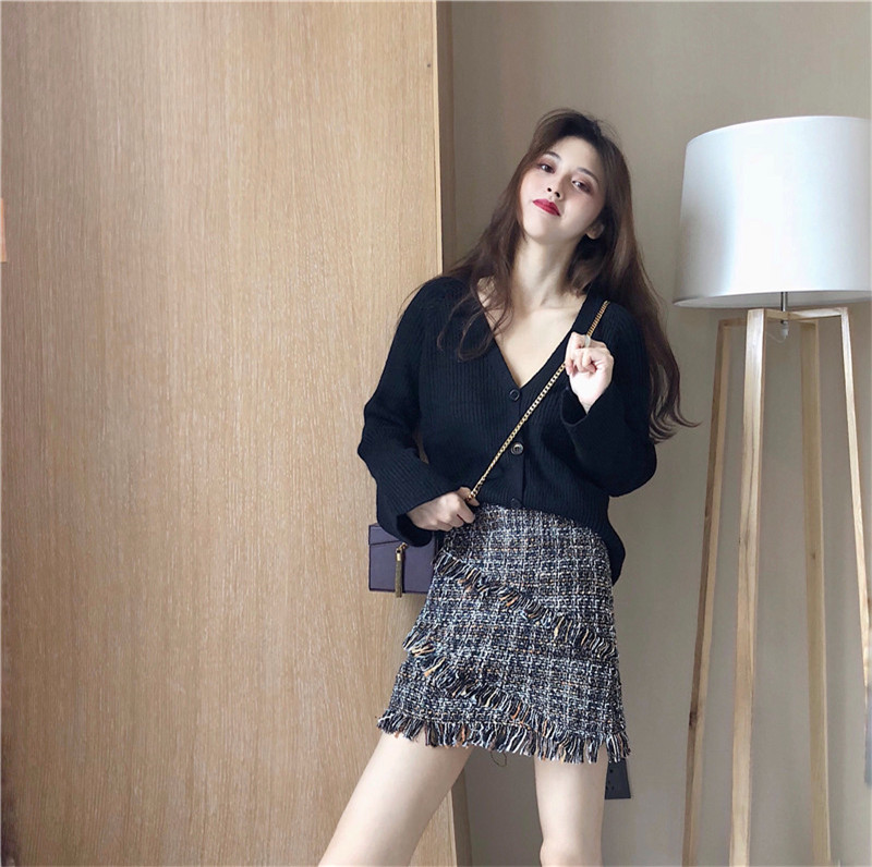 黑色開衫|咖色開衫|短裙S|短裙M