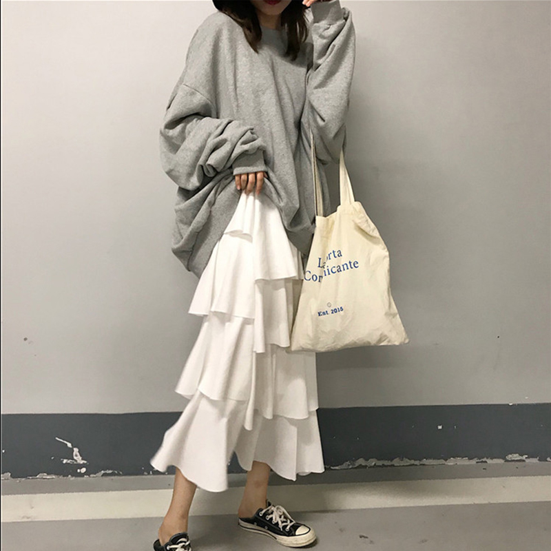 白色衛衣|灰色衛衣|黑色半身裙|白色半身裙