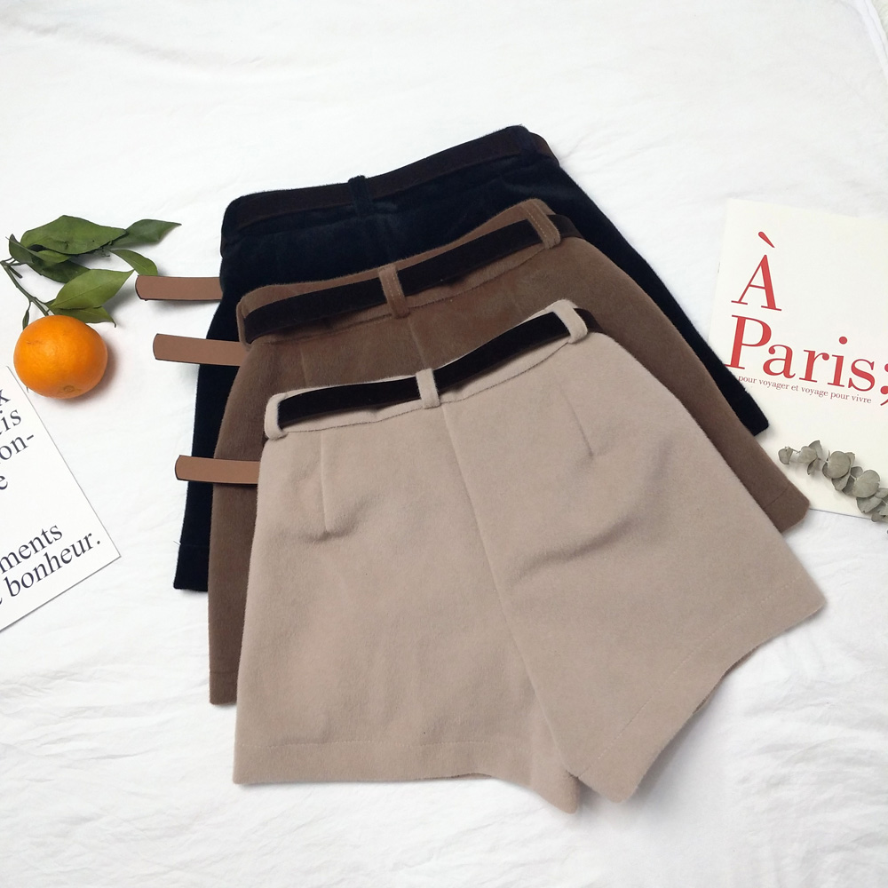 / 港味復古新款chic時尚秋冬百搭毛絨闊褲腿高腰裙褲短褲女潮送腰帶