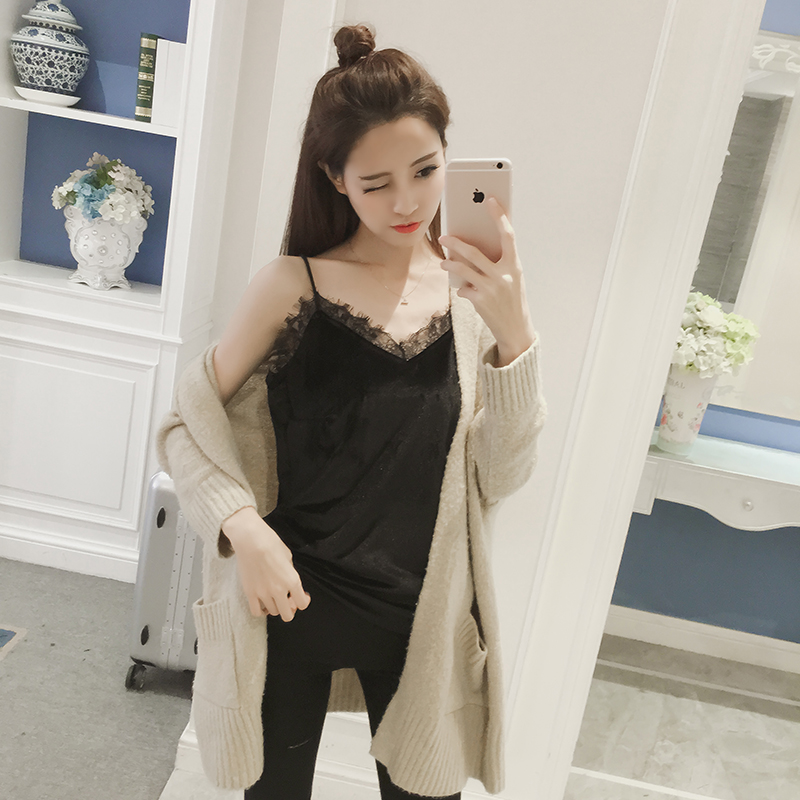 / 秋冬新款女裝內搭單品黑色蕾絲花邊修身顯瘦打底細吊帶背心上衣