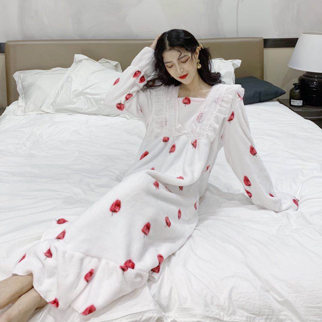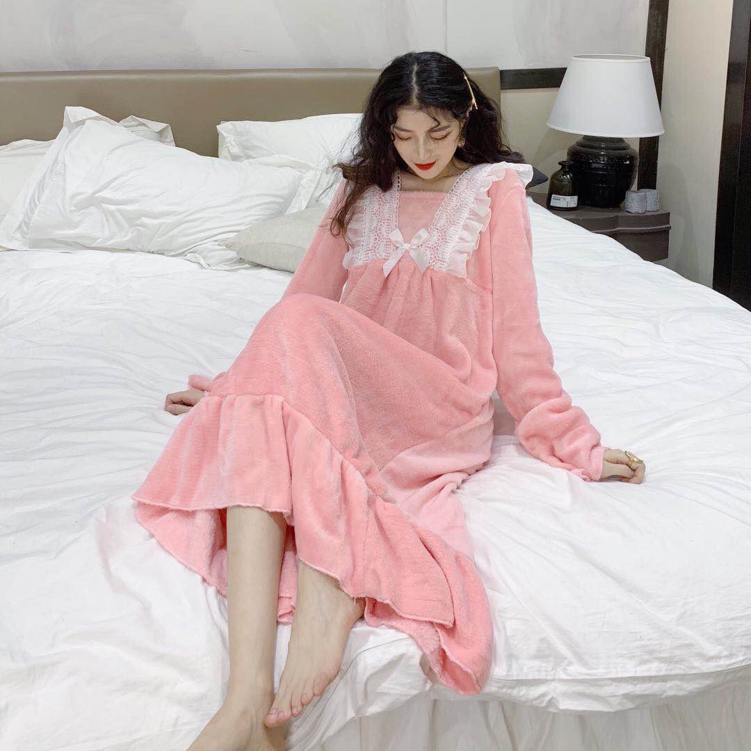/ 秋冬新款甜美舒適韓版百搭保暖睡衣公主風荷葉邊睡裙家居服連衣裙