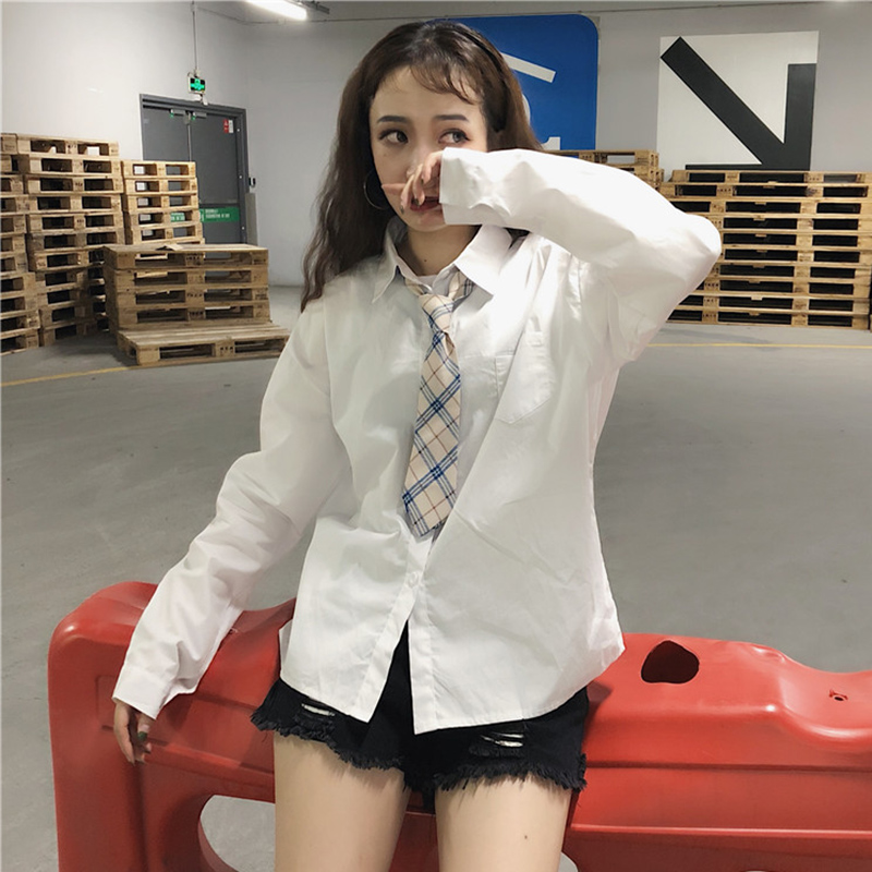 秋裝女2018新款韓版學院風領帶白襯衫學生時尚休閑寬松長袖上衣潮