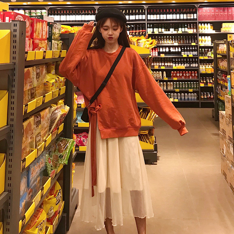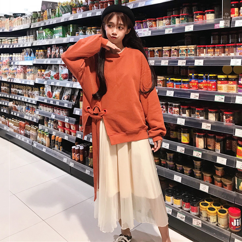 早秋兩件套新款韓版開叉綁帶衛衣外套+大擺半身裙時尚休閑套裝女