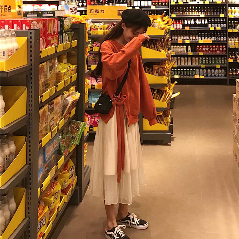 / 早秋兩件套新款韓版開叉綁帶衛衣外套+大擺半身裙時尚休閑套裝女