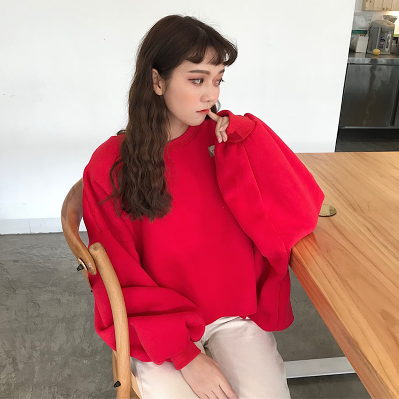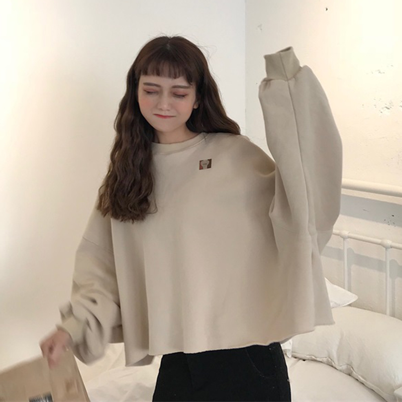 pp home加絨套頭衛衣女秋冬裝2018新款韓版學生寬松蝙蝠長袖外套