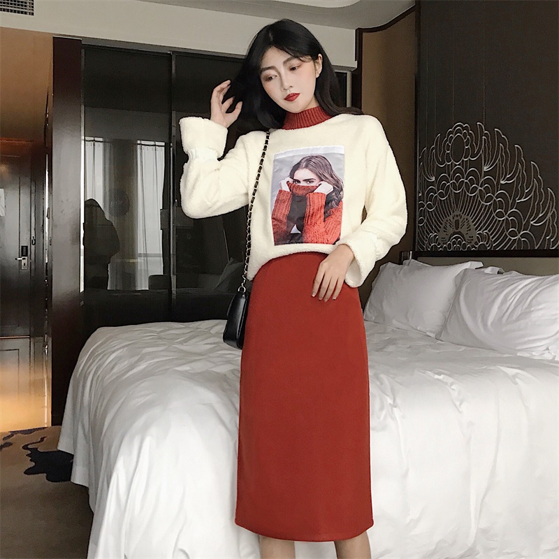 / 洋氣套裝女秋冬2018新款羊羔毛衛衣女+百搭中長款裙子時尚兩件套