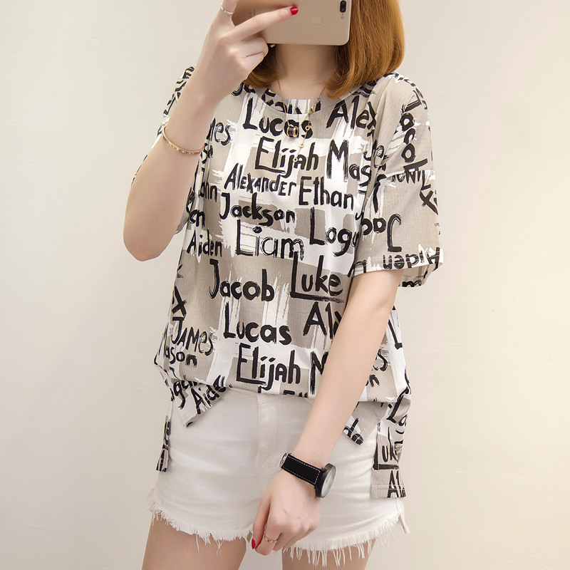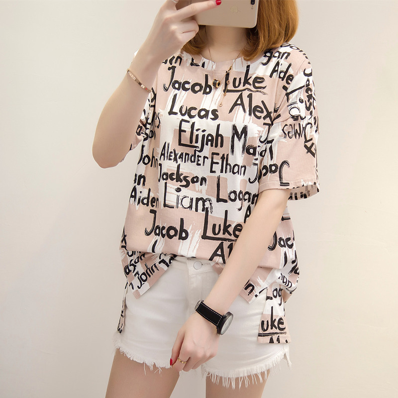 夏裝新款女裝t恤女短袖韓版涂鴉字母寬松體恤衫百搭上衣女夏