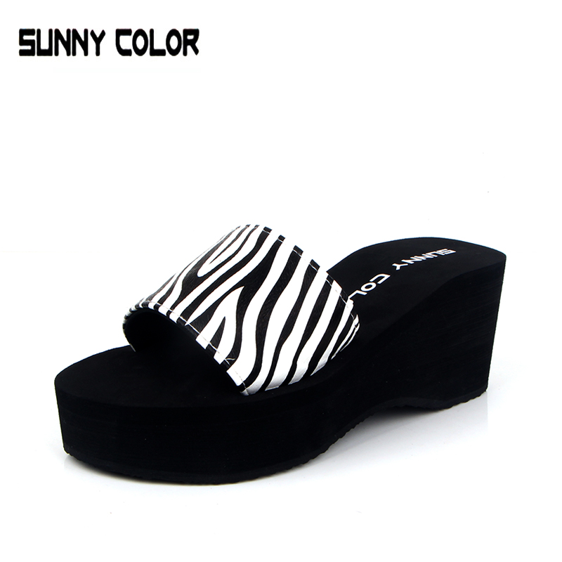 / 夏季防滑厚底坡跟一字拖女士松糕跟沙灘鞋高跟涼拖鞋