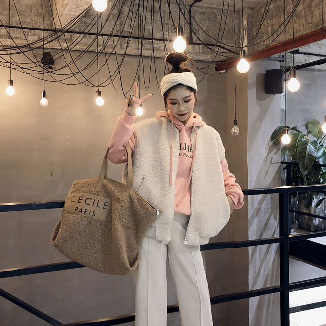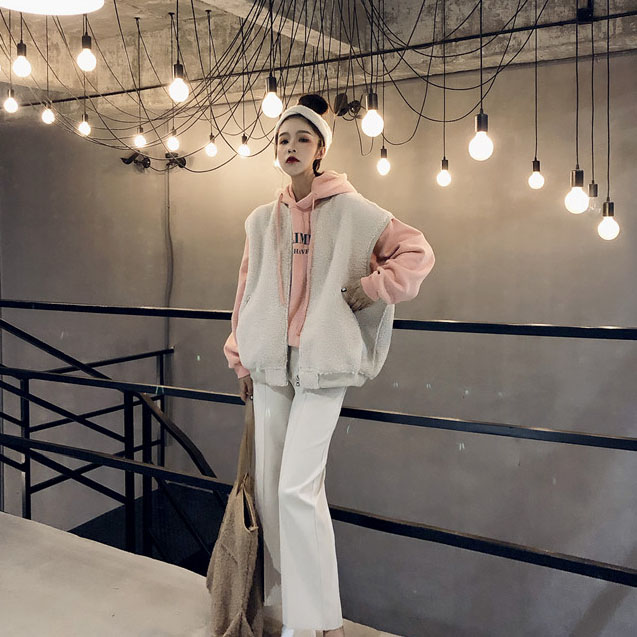 / 韓國chic新款無袖羊羔毛無袖絨衫復古鹿皮絨加厚保暖馬甲外套女