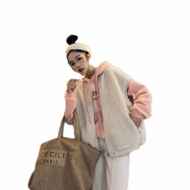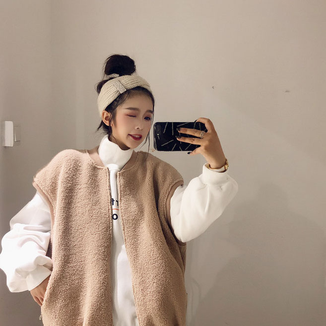 韓國chic新款無袖羊羔毛無袖絨衫復古鹿皮絨加厚保暖馬甲外套女