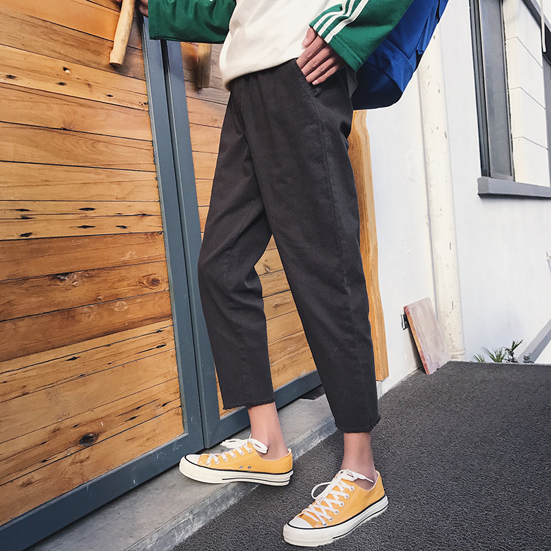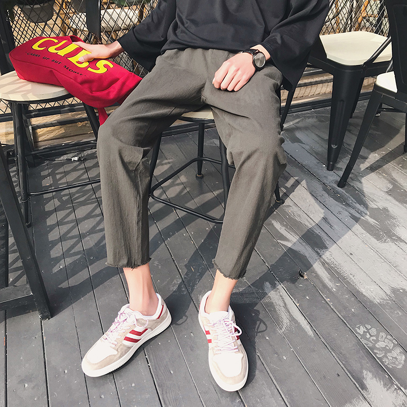 / 秋季褲子休閑褲百搭九分褲男士韓版潮流寬松薄款運動褲純色直筒褲
