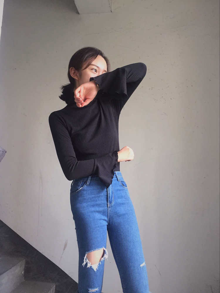 / 秋冬新款修身顯瘦女裝T恤上衣韓版百搭喇叭長袖套頭打底衫女