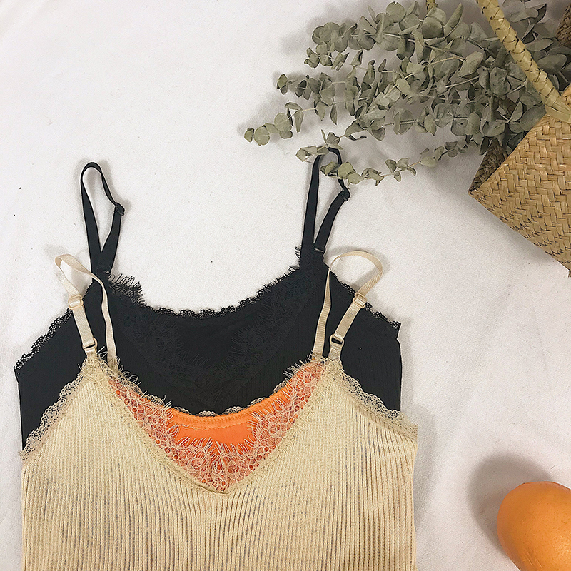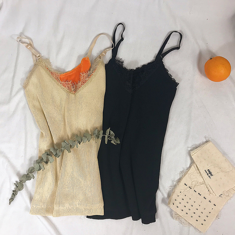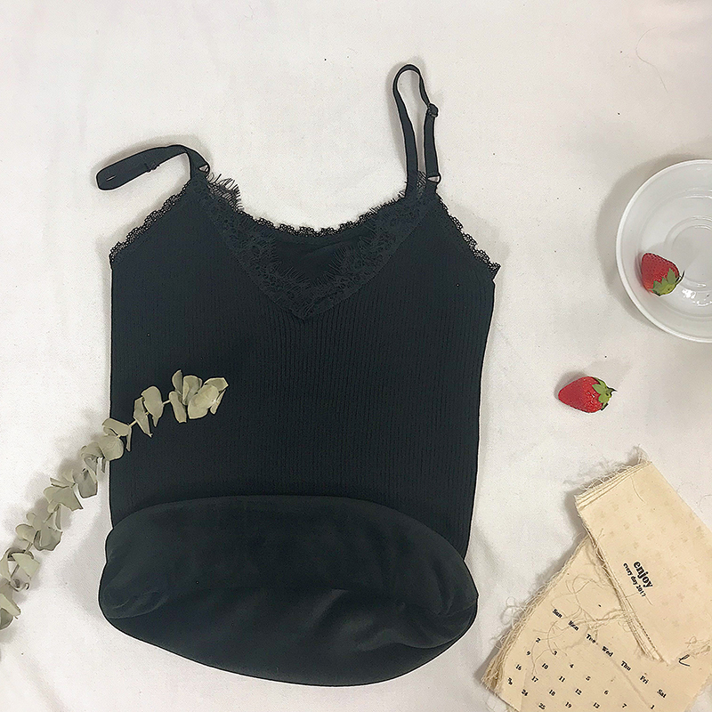 / 加絨保暖蕾絲打底衫秋冬裝2018新款韓版氣質修身黑色顯瘦吊帶背心