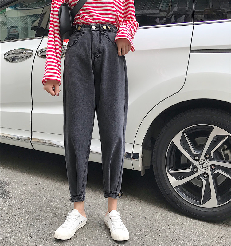 / 褲子2018新款冬季加絨加厚寬松直筒闊腿哈倫老爹蘿卜褲牛仔褲女潮