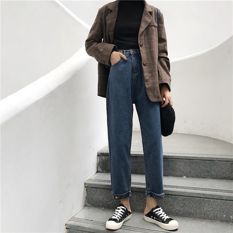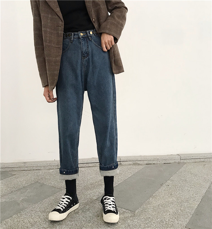褲子2018新款冬季加絨加厚寬松直筒闊腿哈倫老爹蘿卜褲牛仔褲女潮