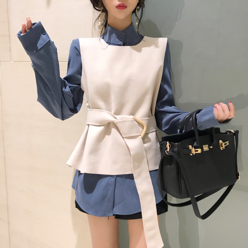 藍色襯衫|米色馬甲