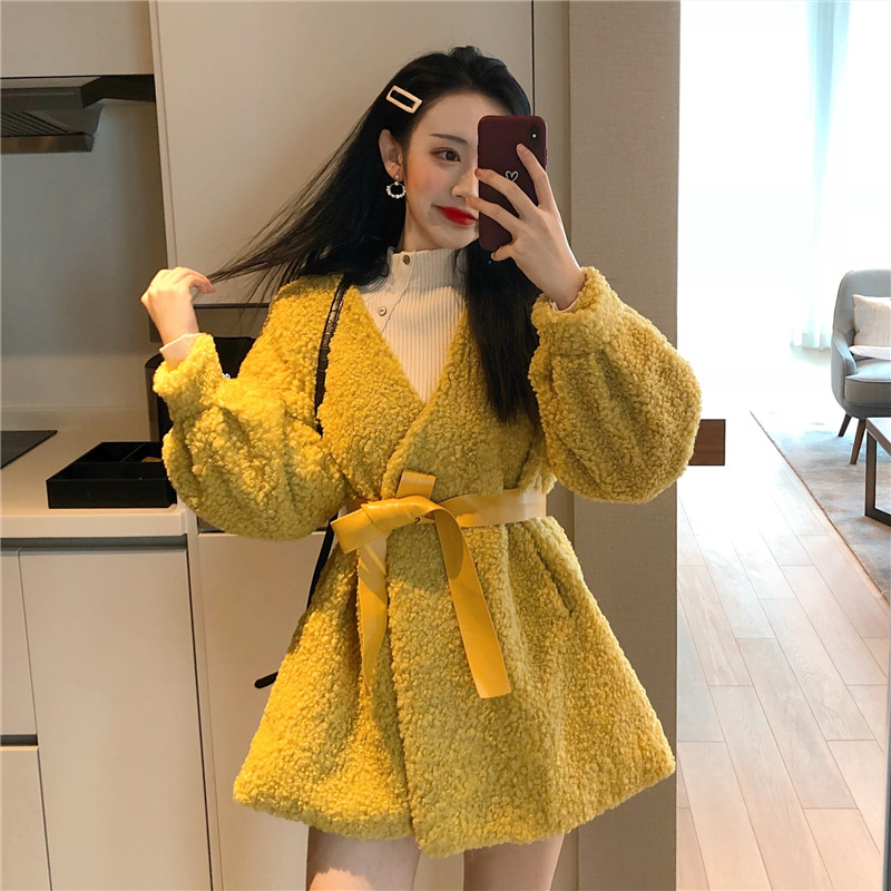復古溫柔慵懶風隨意暖色系百搭寬松中長款毛呢外套女韓版呢子大衣