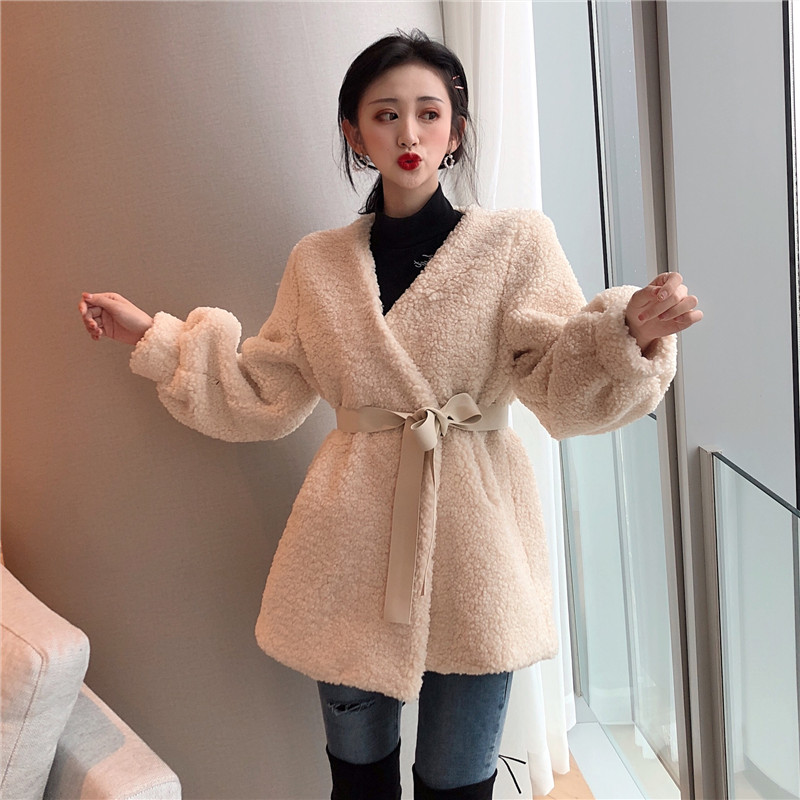 毛呢外套女冬季大衣女新款2018韓版簡約時尚蝴蝶結系帶呢子上衣潮
