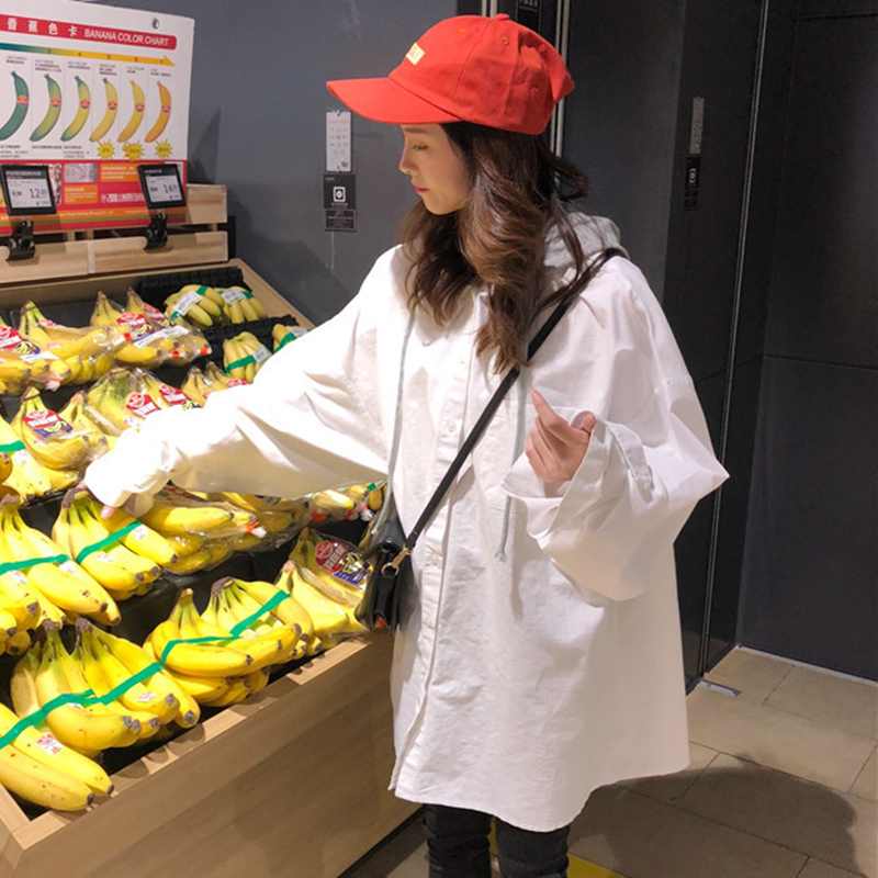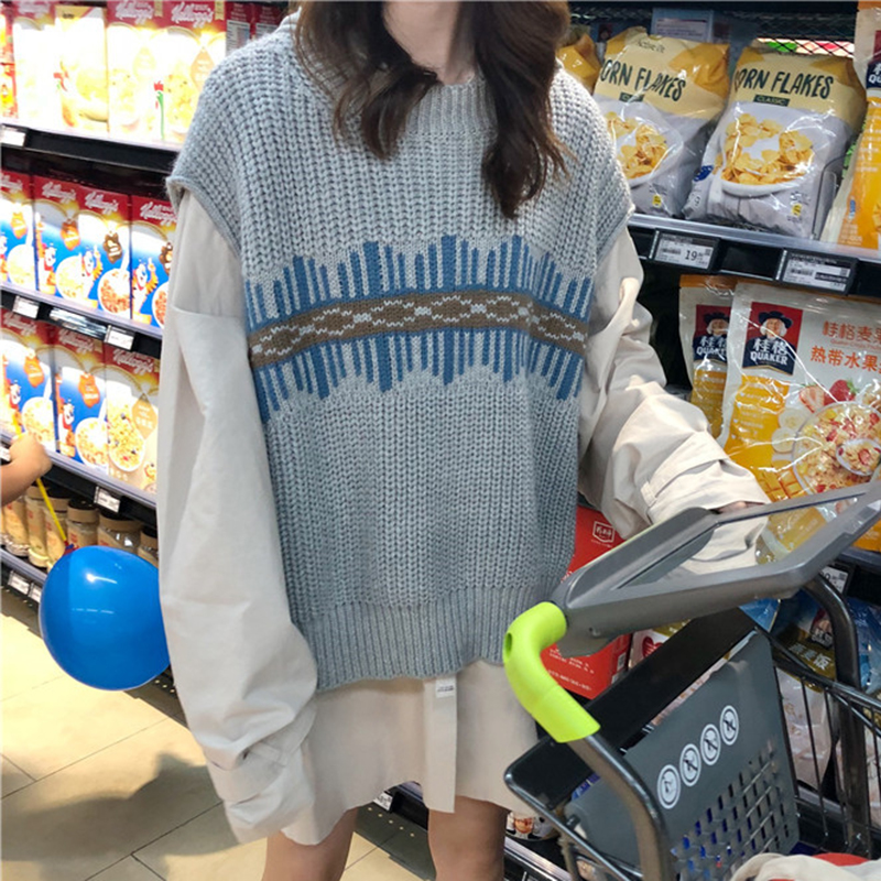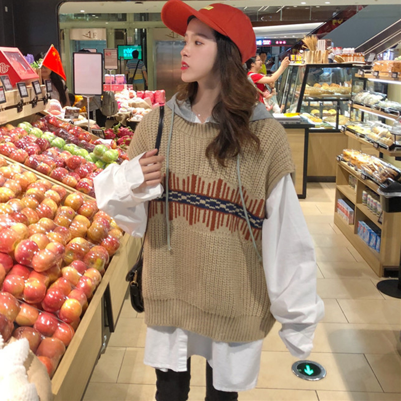 / 學院風兩件套秋裝女2018新款寬松中長款連帽襯衫拼色針織毛衣馬甲