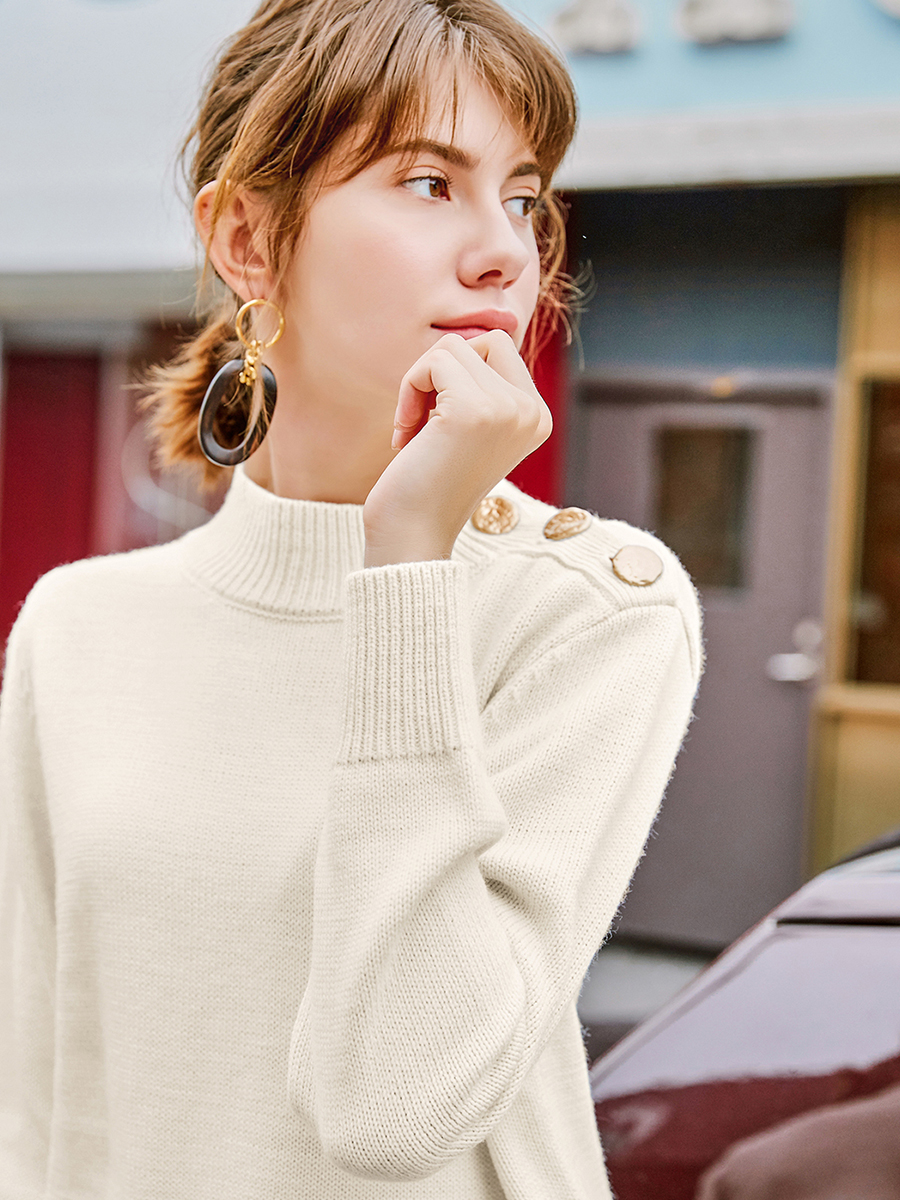 / MG小象半高領黑色毛衣女2018新款寬松秋冬上衣休閑套頭個性針織衫