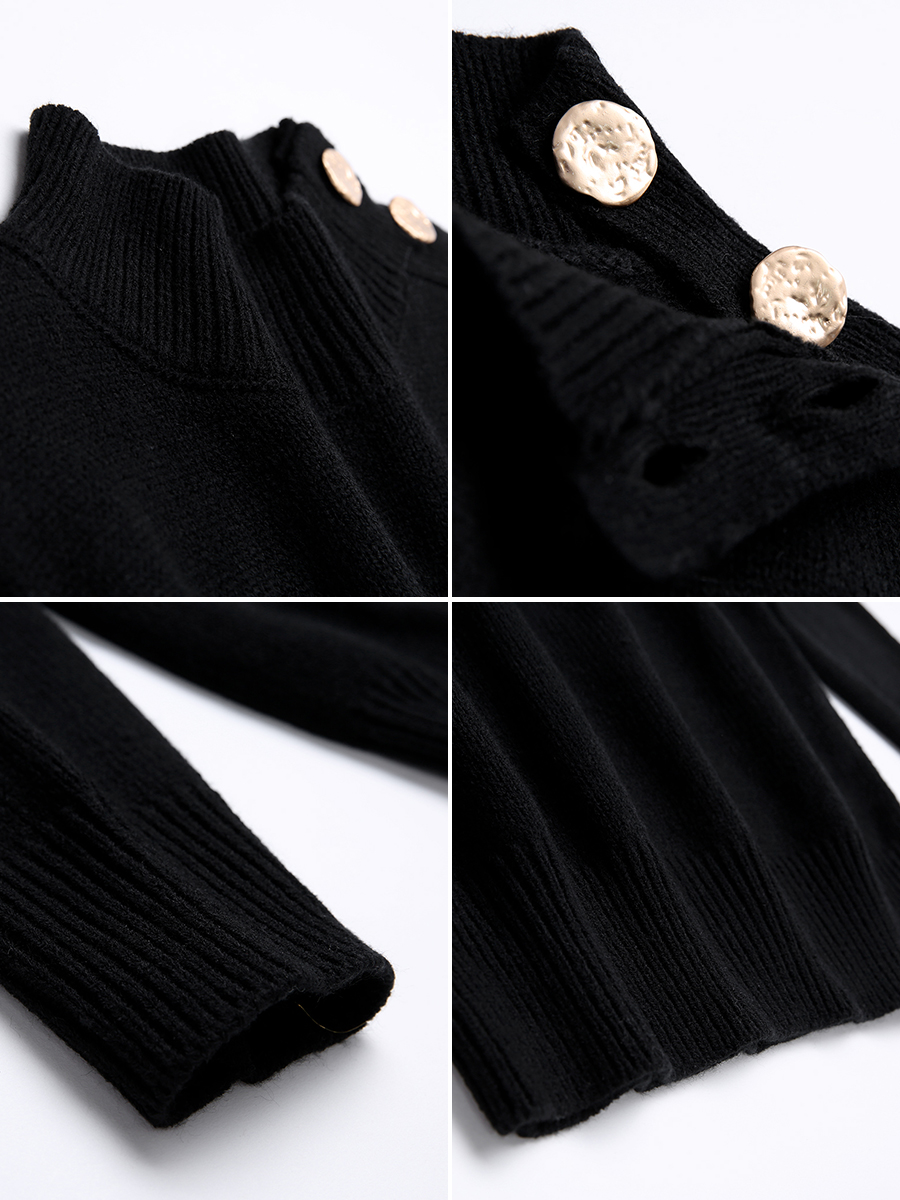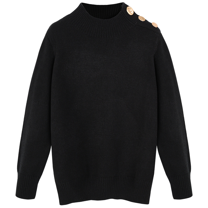 MG小象半高領黑色毛衣女2018新款寬松秋冬上衣休閑套頭個性針織衫