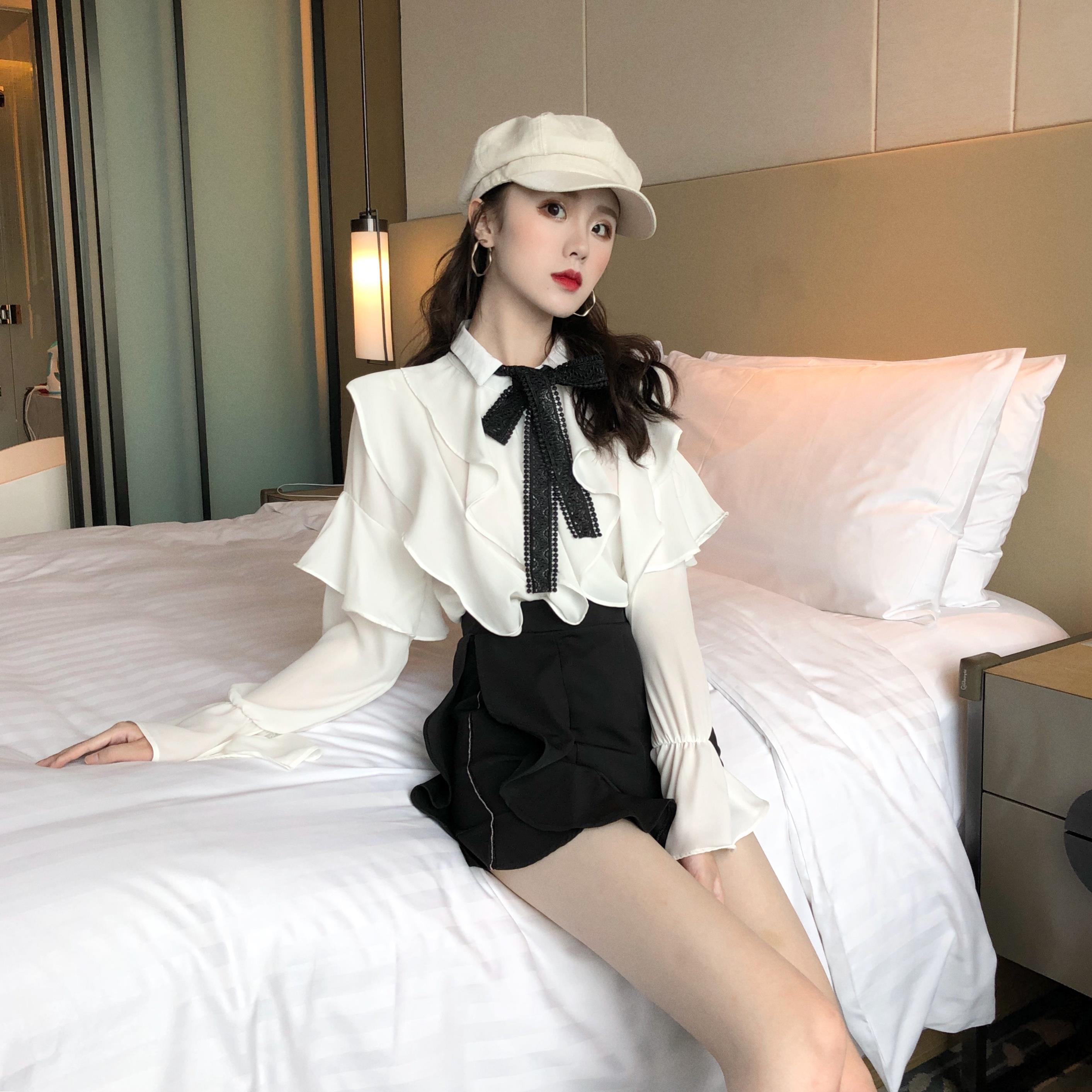邊邊還是做了壓褶處理的荷葉邊,加上若影閃現的水鉆邊