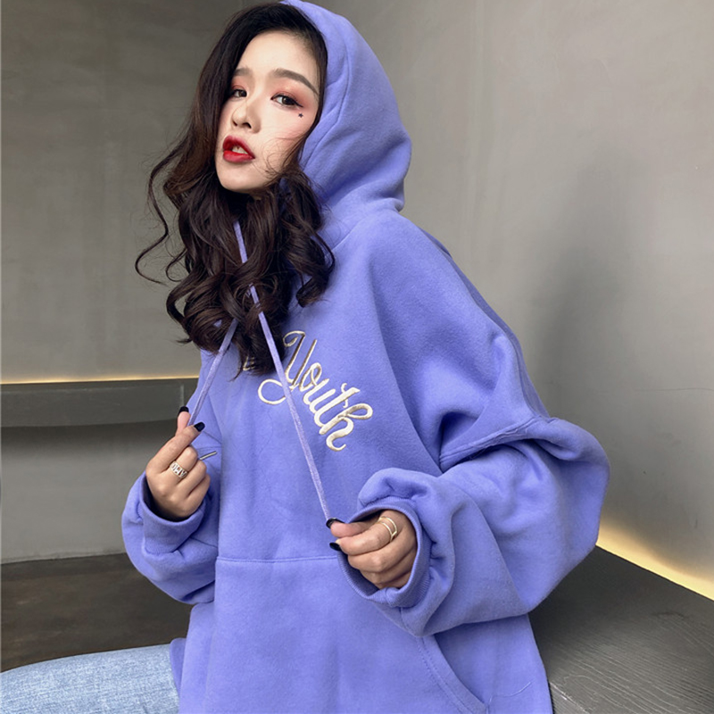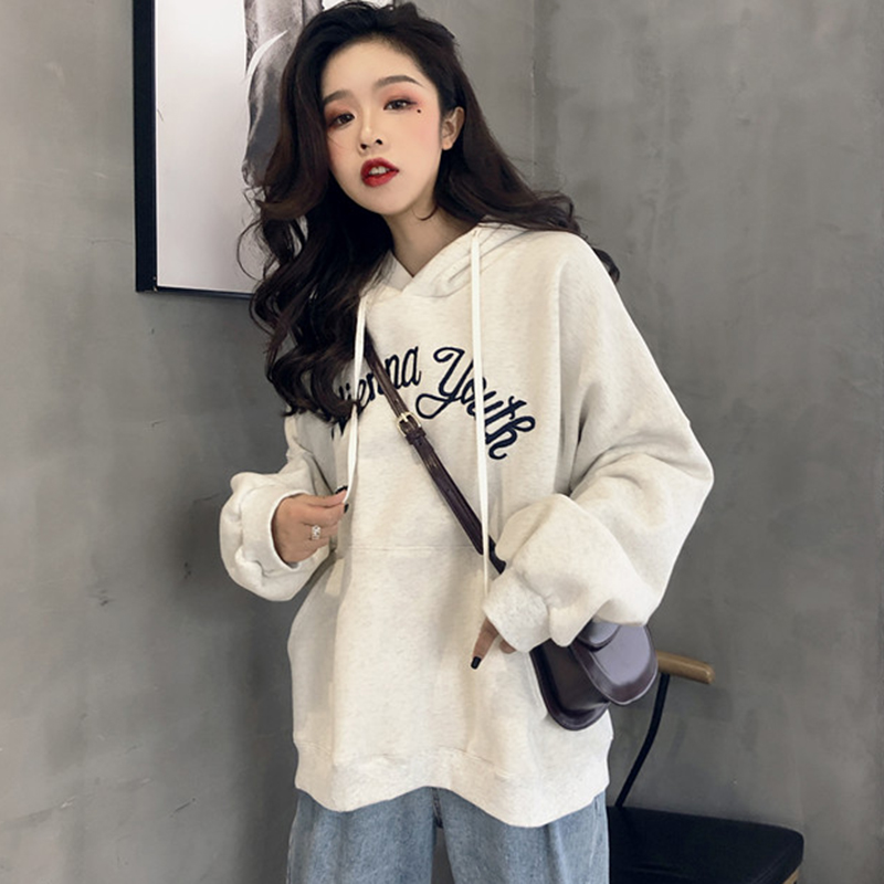 chic慵懶風字母刺繡衛衣女秋冬裝2018新款韓版百搭寬松連帽外套潮
