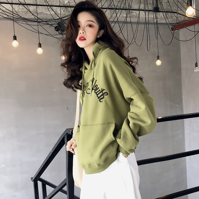 / chic慵懶風字母刺繡衛衣女秋冬裝2018新款韓版百搭寬松連帽外套潮