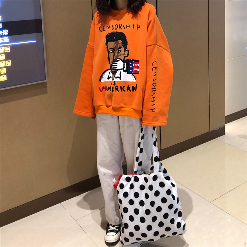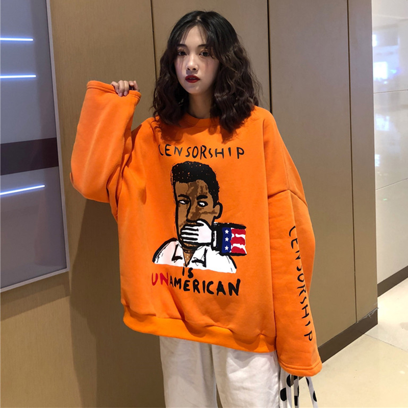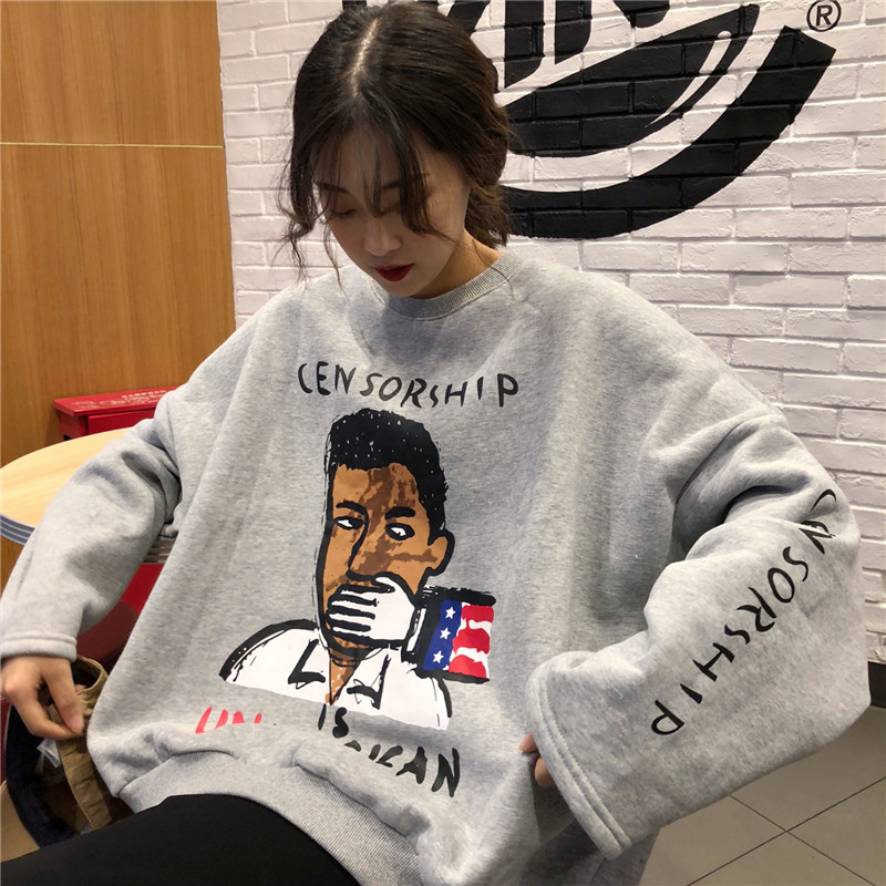 / 原宿風字母人物印花衛衣女秋冬裝2018新款韓版中長款寬松長袖外套