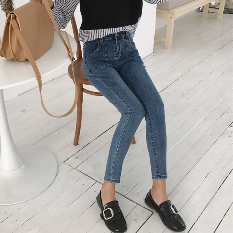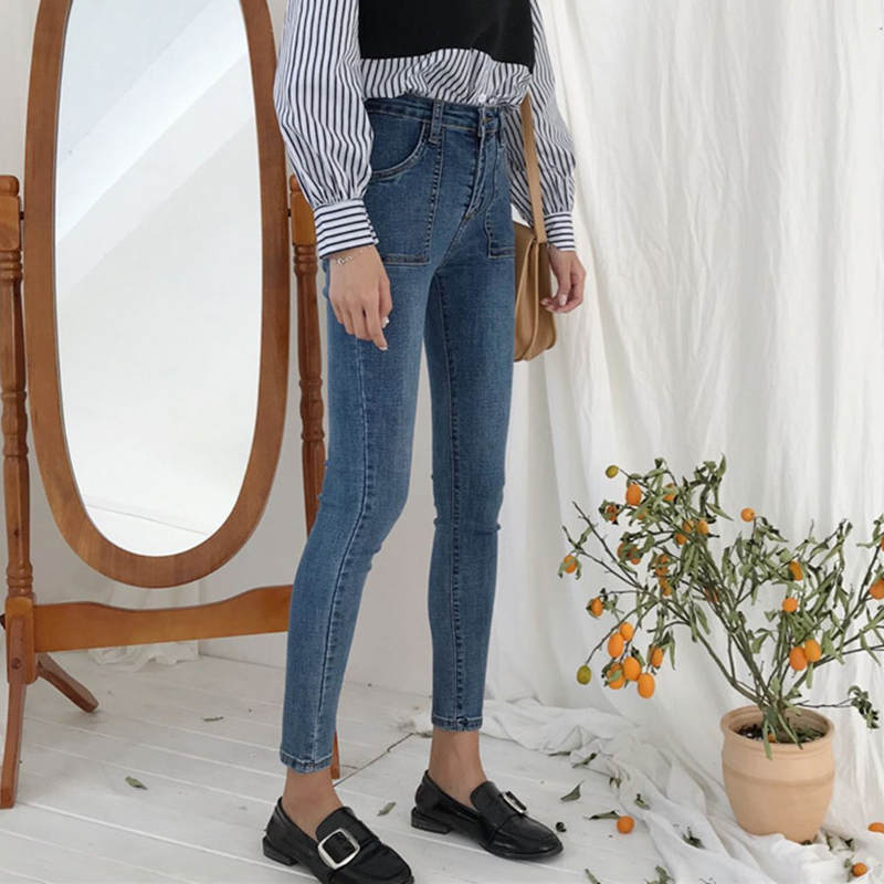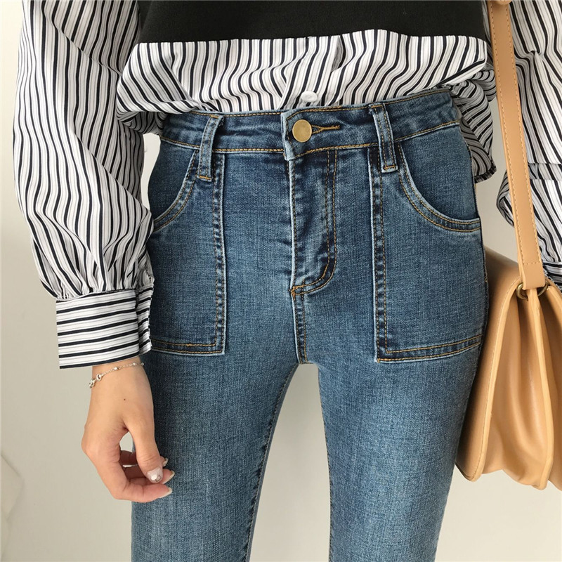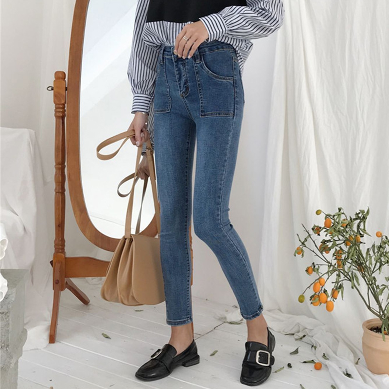 高腰顯瘦鉛筆褲女裝秋季新款韓版學生復古九分褲子休閑彈力牛仔褲