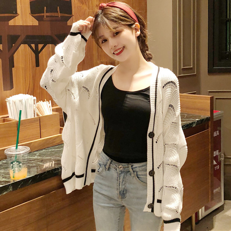 / 慵懶風毛衣女秋裝新款韓版鏤空針織開衫外套學生黑色寬松長袖上衣