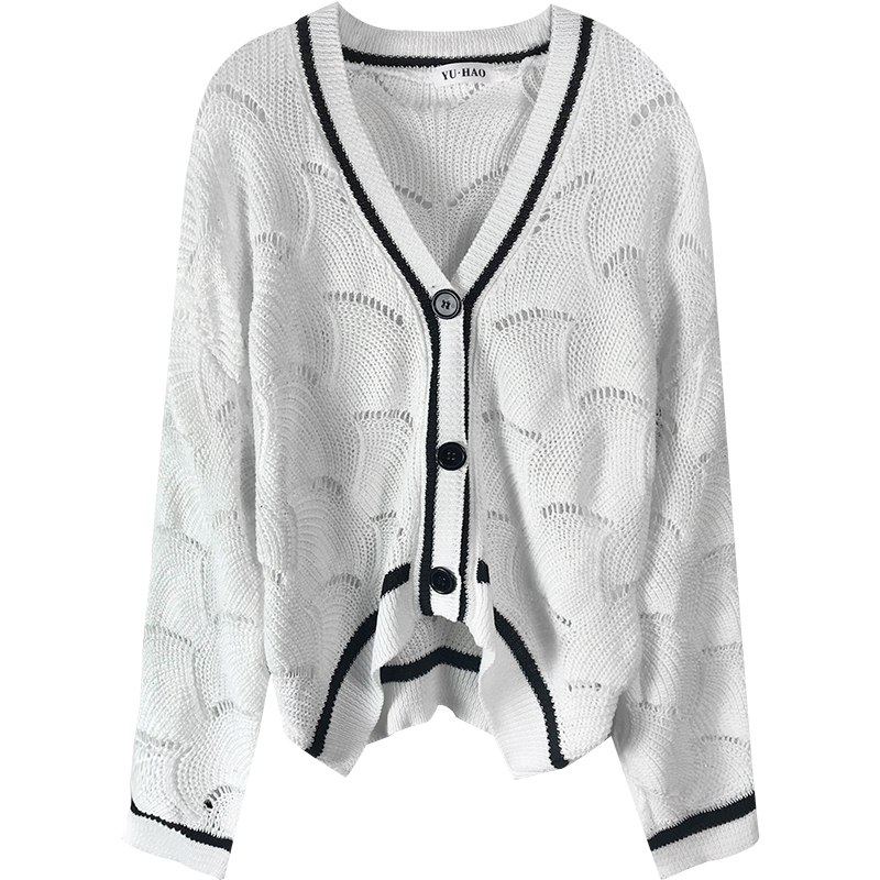 慵懶風毛衣女秋裝新款韓版鏤空針織開衫外套學生黑色寬松長袖上衣