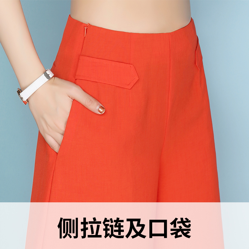 a字顯瘦棉麻高腰七分闊腿褲春夏大碼寬松九分褲休閑褲寬腳甩腿褲