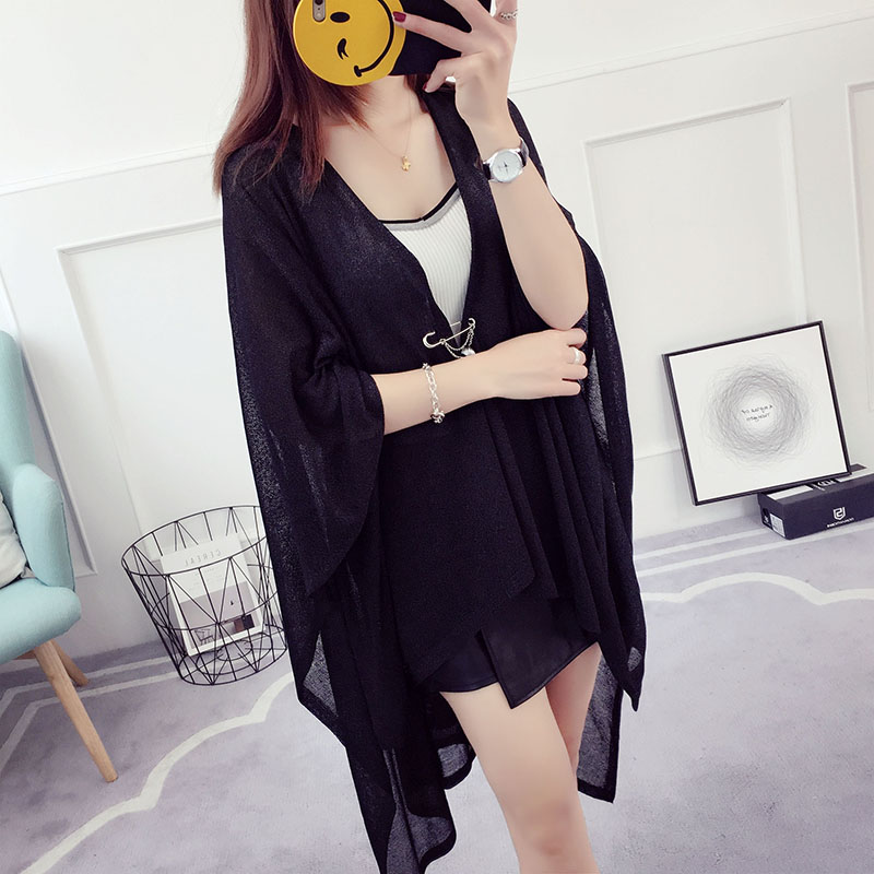 / 冰絲針織衫披肩外套女春秋韓版百搭中長款夏季薄款外搭防曬衣開衫