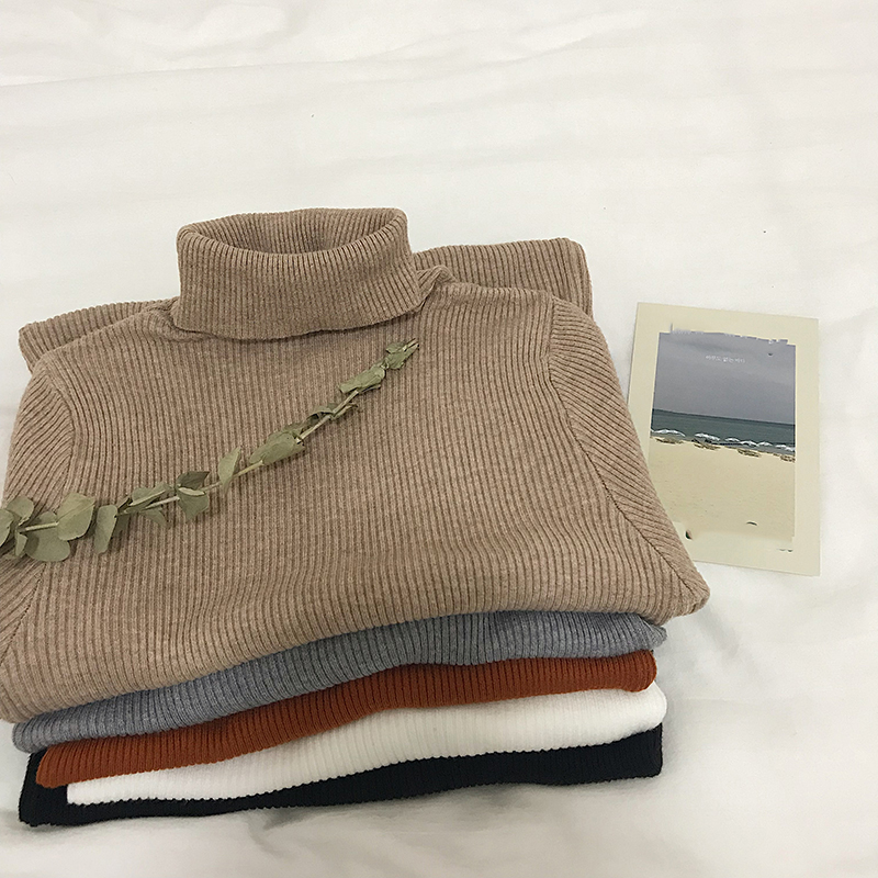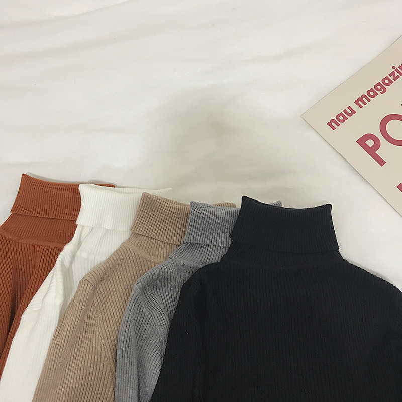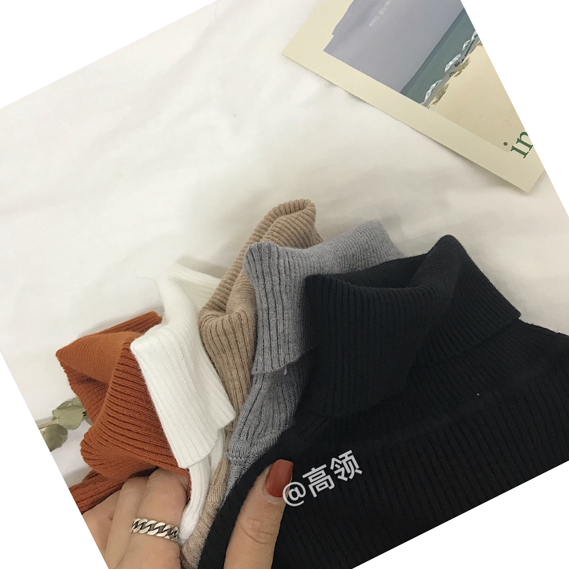 / 高領緊身針織衫女修身顯瘦黑色打底上衣秋裝新款套頭短款長袖T恤
