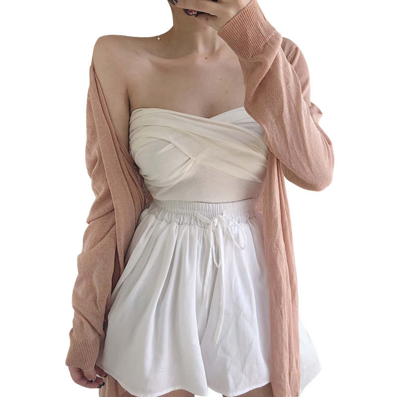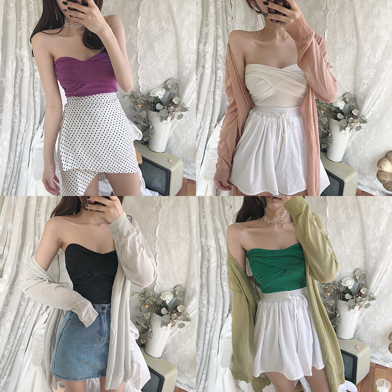 / 韓版chic風百搭無肩帶防走光裹胸顯瘦純色復古內搭修身交叉抹胸女