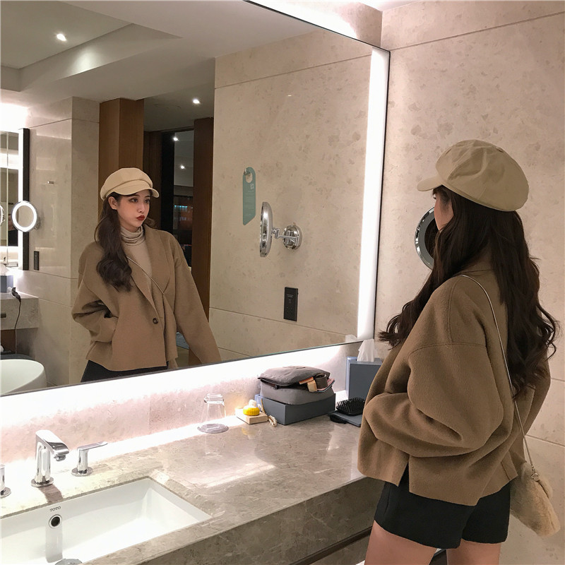 韓版羊羔毛毛呢外套女冬季大衣女新款百搭寬松翻領長袖雙排扣夾克