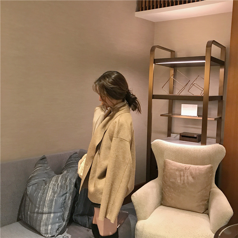 馬海毛網紅毛衣女2018新款針織開衫外套冷淡風針織吊帶連衣裙套裝