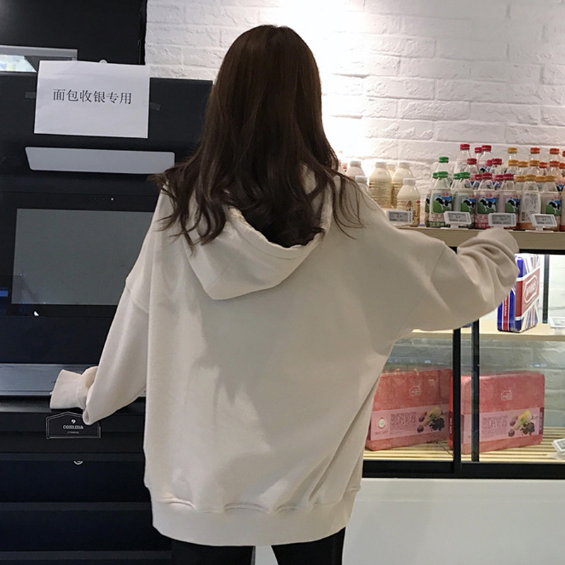 / 秋冬女裝2018新款慵懶風寬松加絨長袖上衣套頭連帽中長款衛衣外套