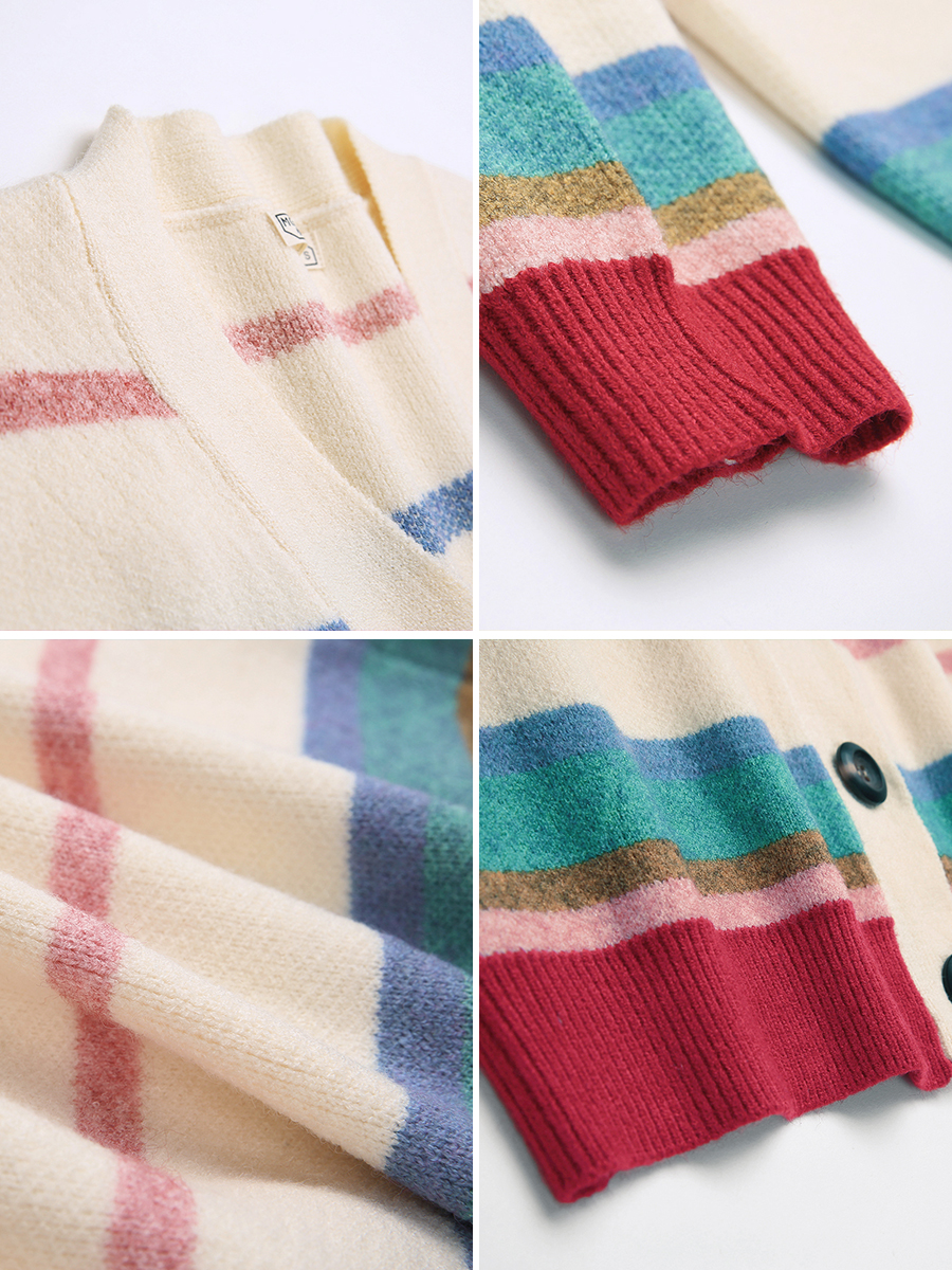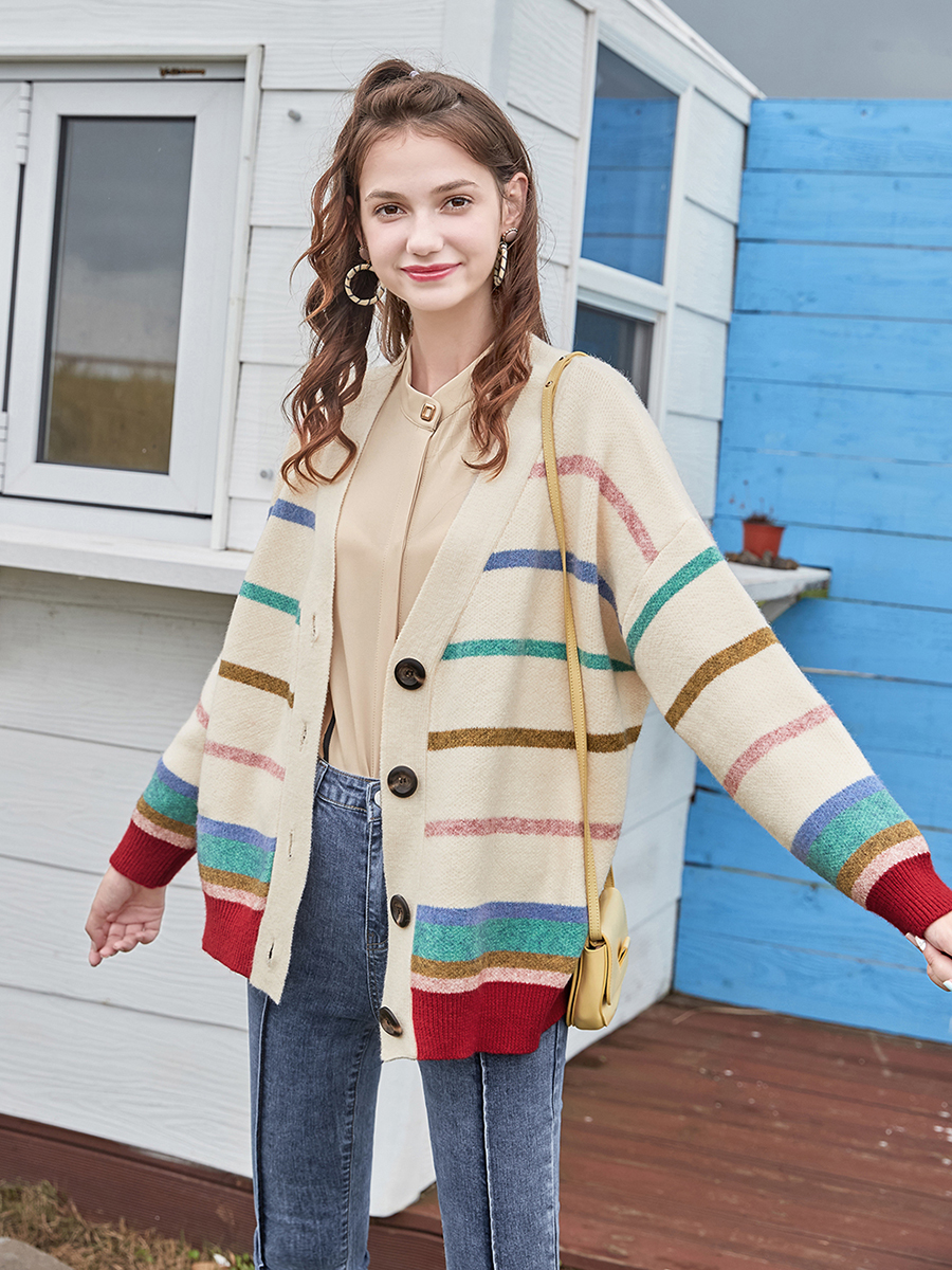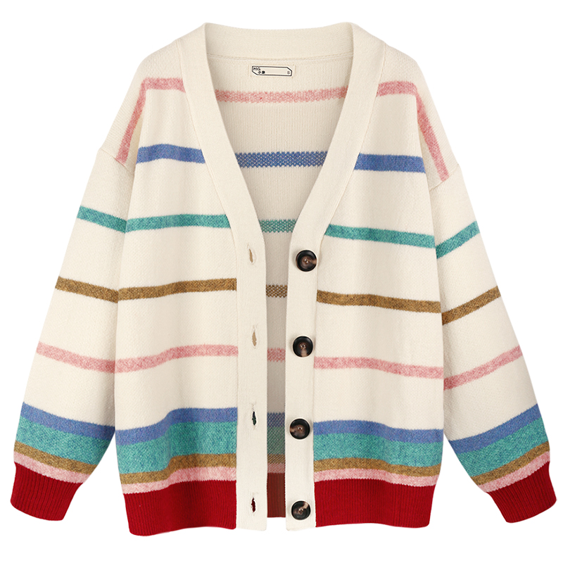 MG小象休閑條紋毛衣女秋冬2018新款學生寬松長袖開衫bf風針織外套