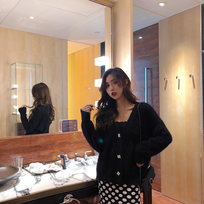 / V領單排扣時尚毛絨慵懶風網紅毛衣女2018新款馬海毛針織開衫外套