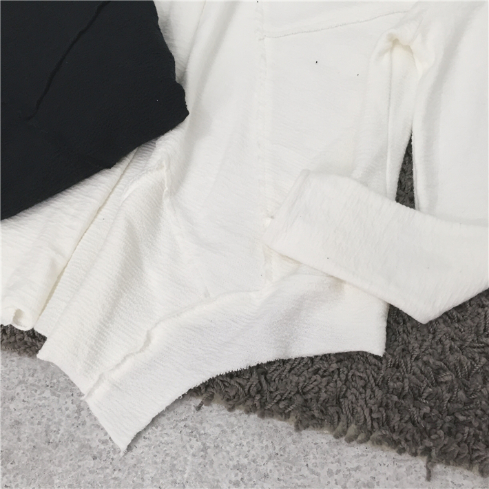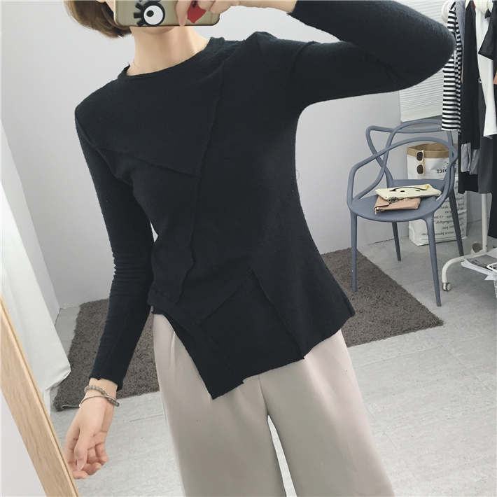 / 秋冬款韓國chic拼接不規則套頭修身彈力純色打底衫上衣T恤女
