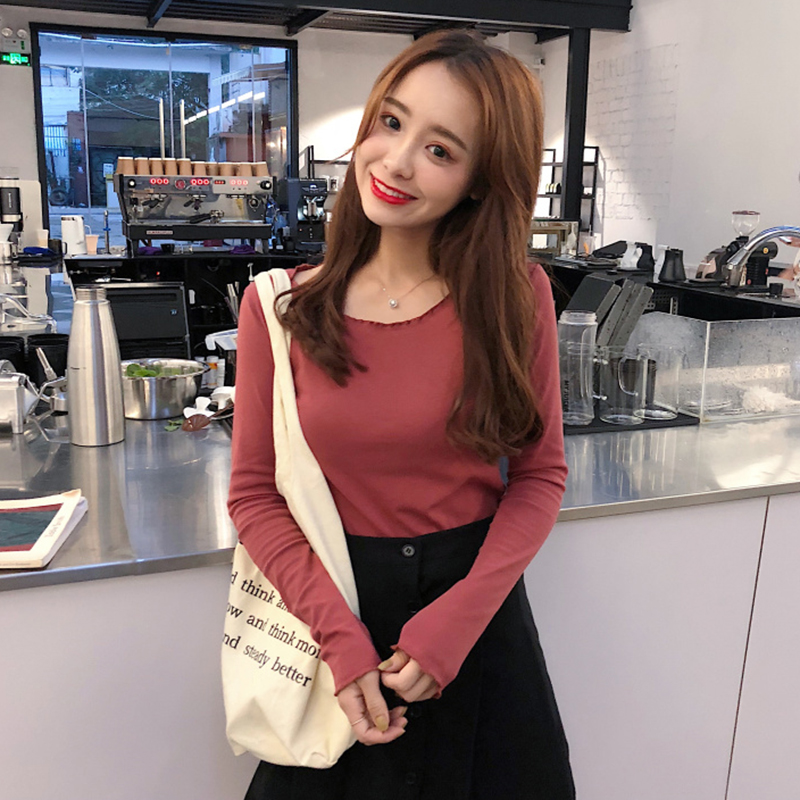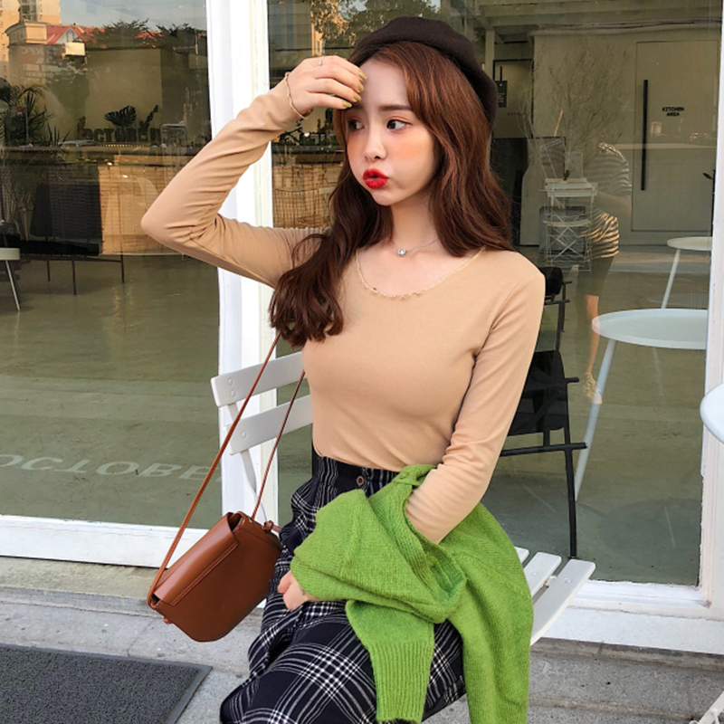 / 上衣女秋2018新款打底衫t恤女長袖 圓領黑色修身打底衫學生女裝