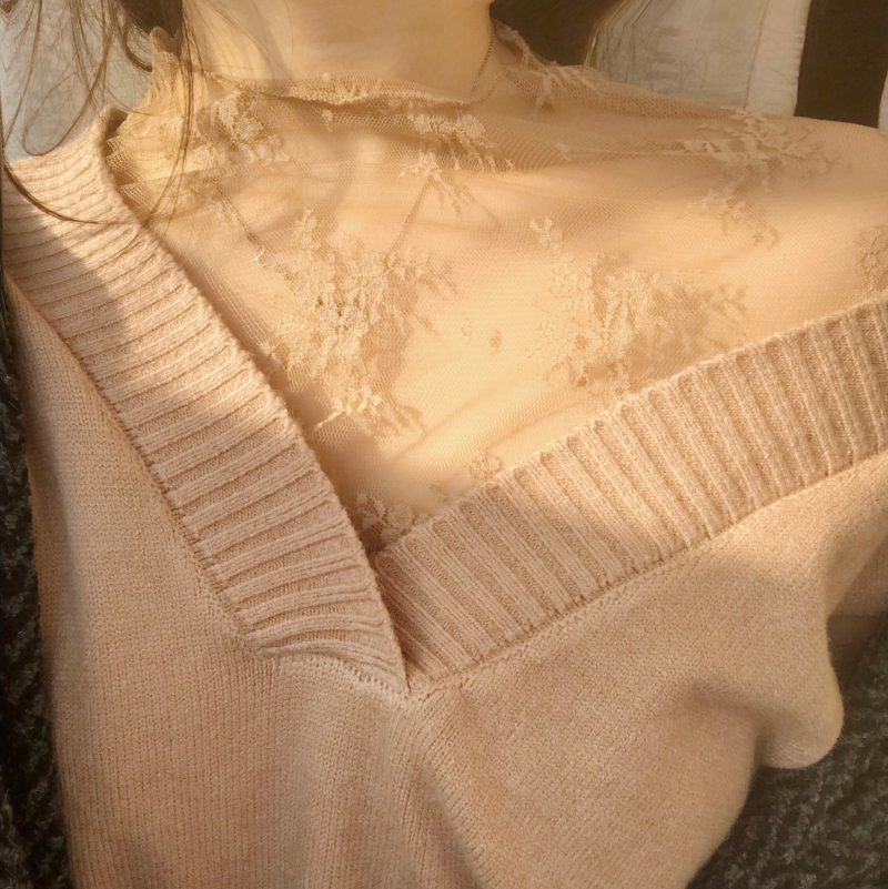 chic復古韓風女秋2018新款高領蕾絲衫女長袖內搭打底衫上衣~2色人