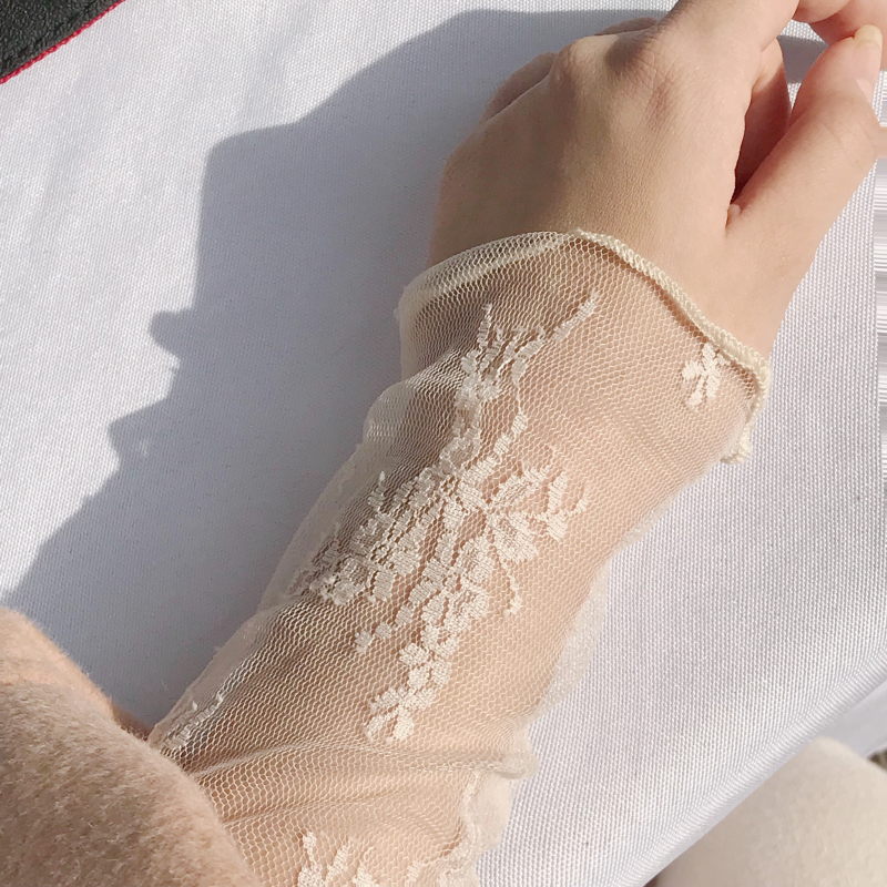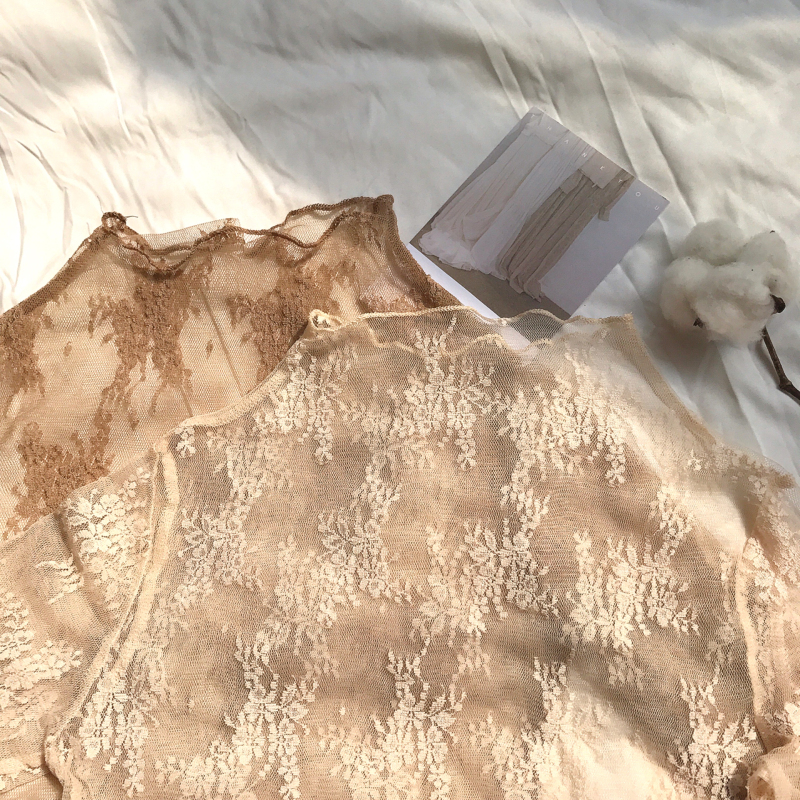 復古韓國chic風性感透視蕾絲鏤空高領顯瘦透視網紗喇叭袖內搭上衣