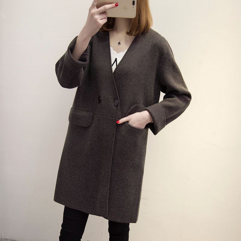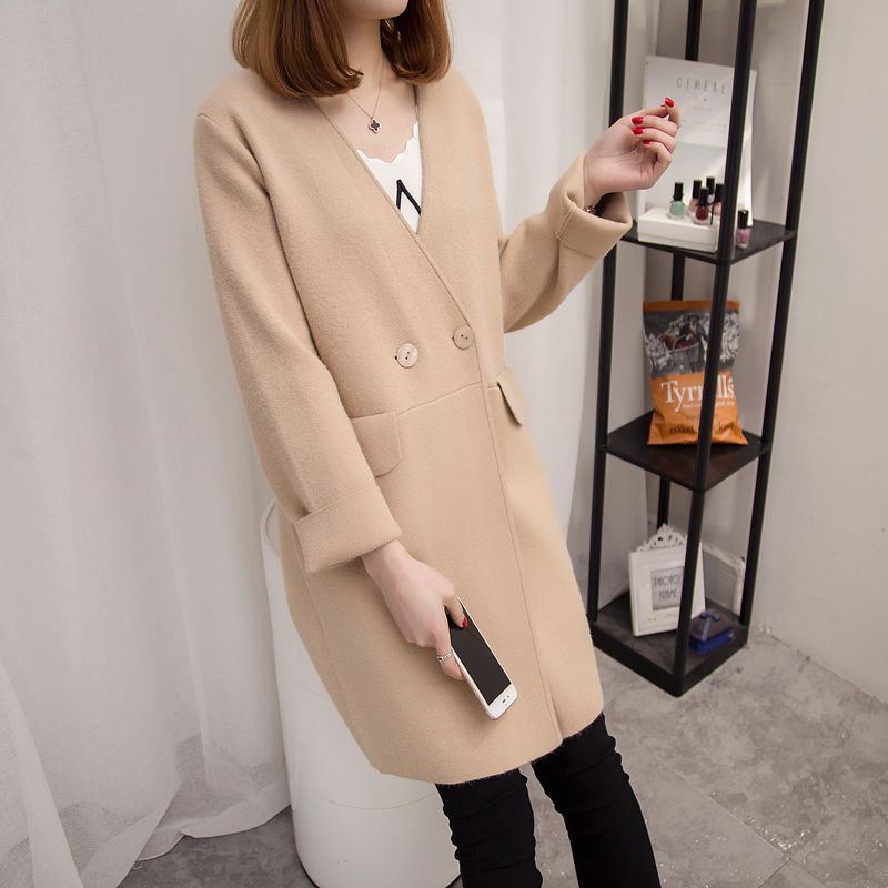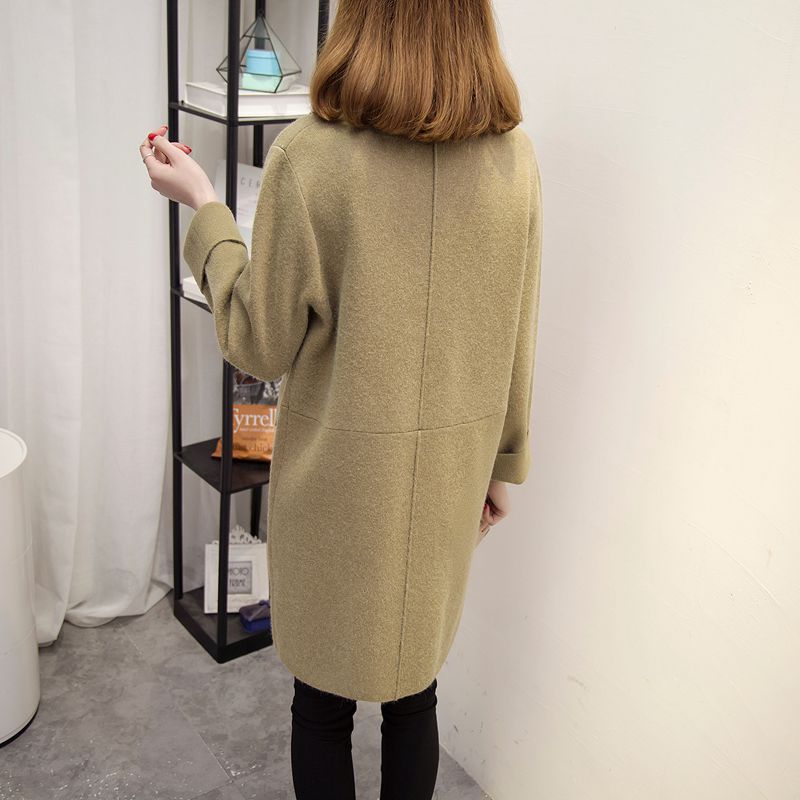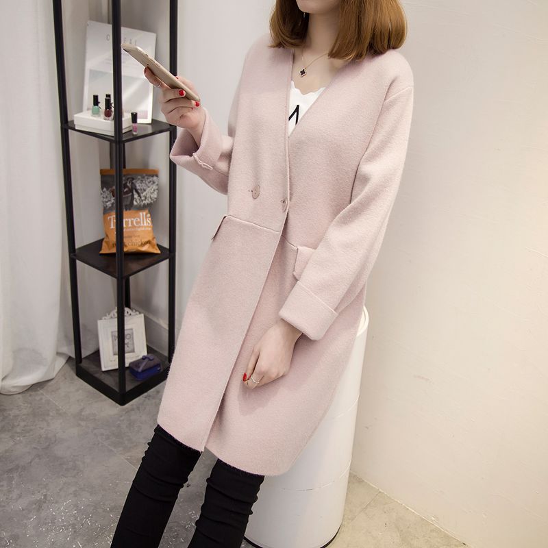 / 冬季女裝新款韓版潮紐扣針織衫女開衫毛衣裙純色中長款外套
